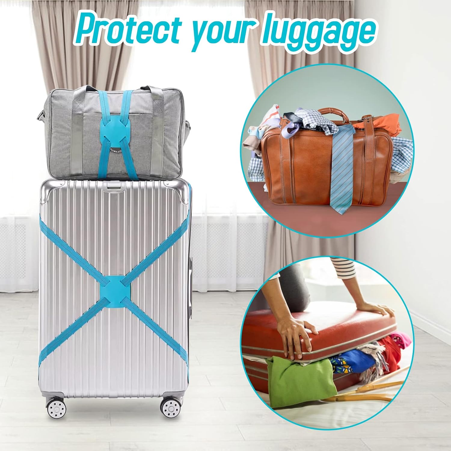 Adjustable elastic strap fits various suitcase sizes and bag types