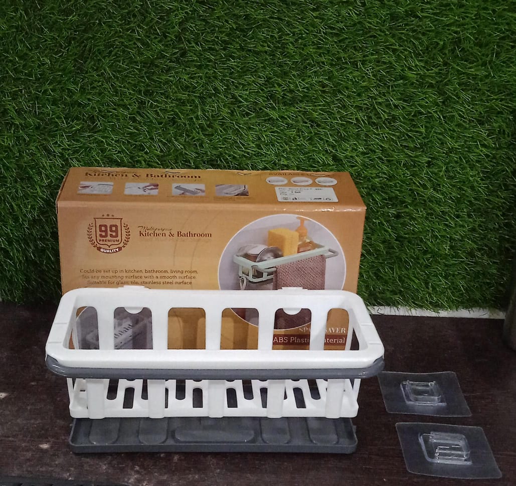 Multipurpose Platic Hanging Drain Rack Retractable Sponge Storage Hanging Rack With Adhesive Hook for Kitchen and Bathroom Dishcloth Holders Basket Drying Tray Organizer