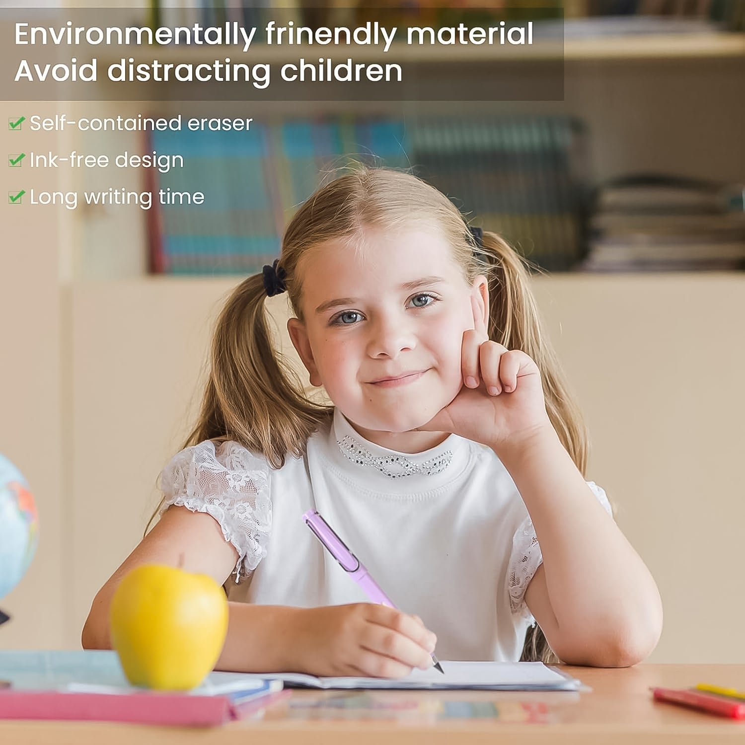 -  ã€Safe for Children】The nib is made of metal, will not cause harm when children use the pen. Small, and the color is similar to that of a normal pencil, and the writing is smooth. The handwriting is also easy to erase with an eraser. There is a long eraser inside, which is easy to erase.