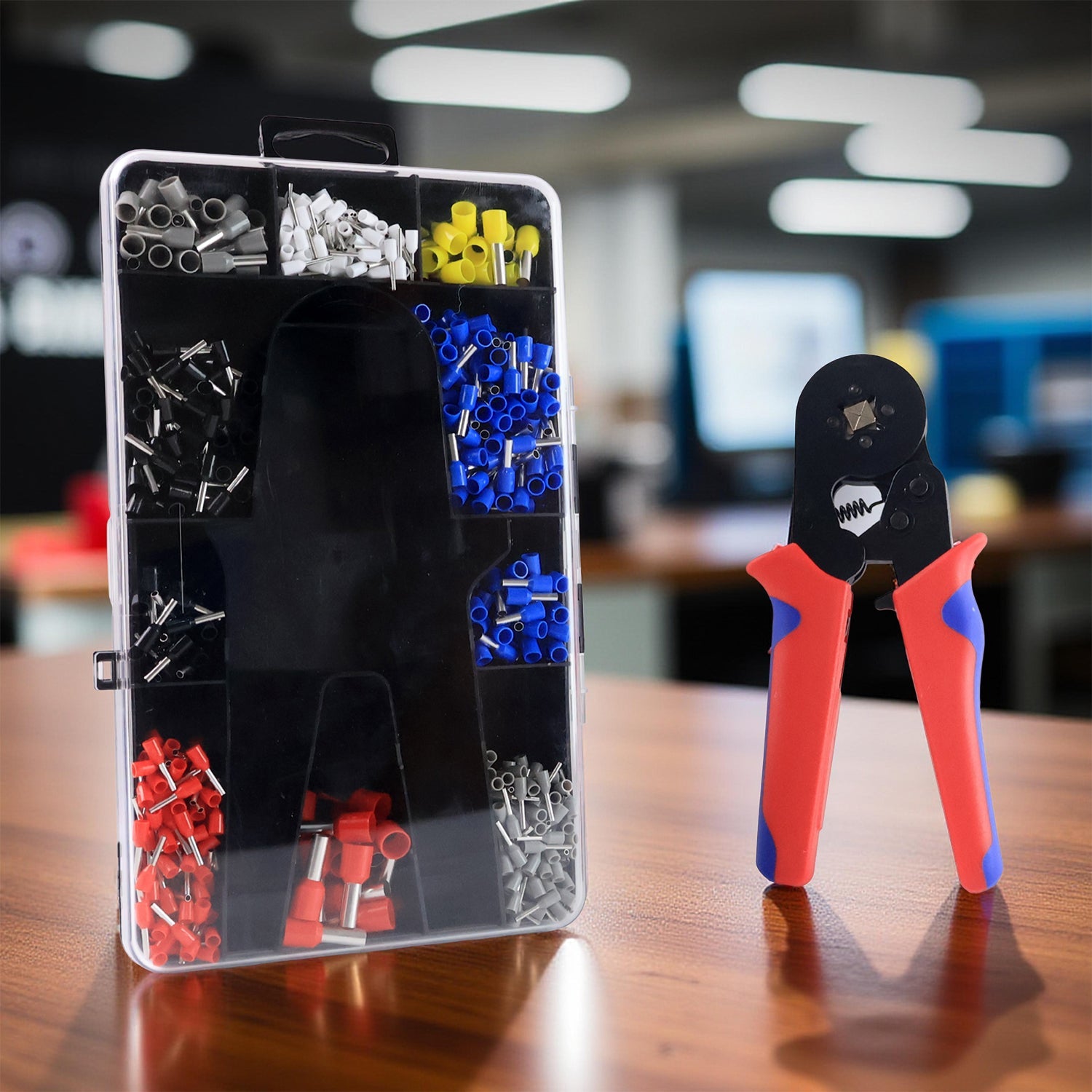 Complete kit includes approx. 1200 ferrule connectors and 1 high-quality ratcheting crimping plier
