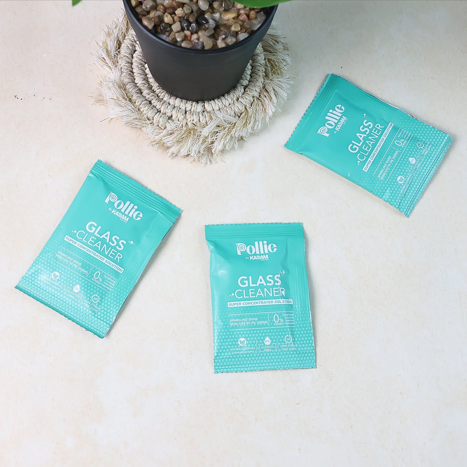Keep glass surfaces sparkling with this refillable glass-cleaner set. The compact concentrate sachets dissolve quickly in water to make a powerful, streak-free solution that lifts fingerprints, smudges, and light grease from windows, mirrors, glass tables, and glossy appliances. The included trigger bottle delivers a fine, even mist for effortless wipe-downs and a crystal-clear shine. Refill-and-reuse sachets cut plastic clutter, save storage space, and make it easy to mix a fresh batch whenever you need it—ideal for daily housekeeping in homes, hostels, rentals, and offices.