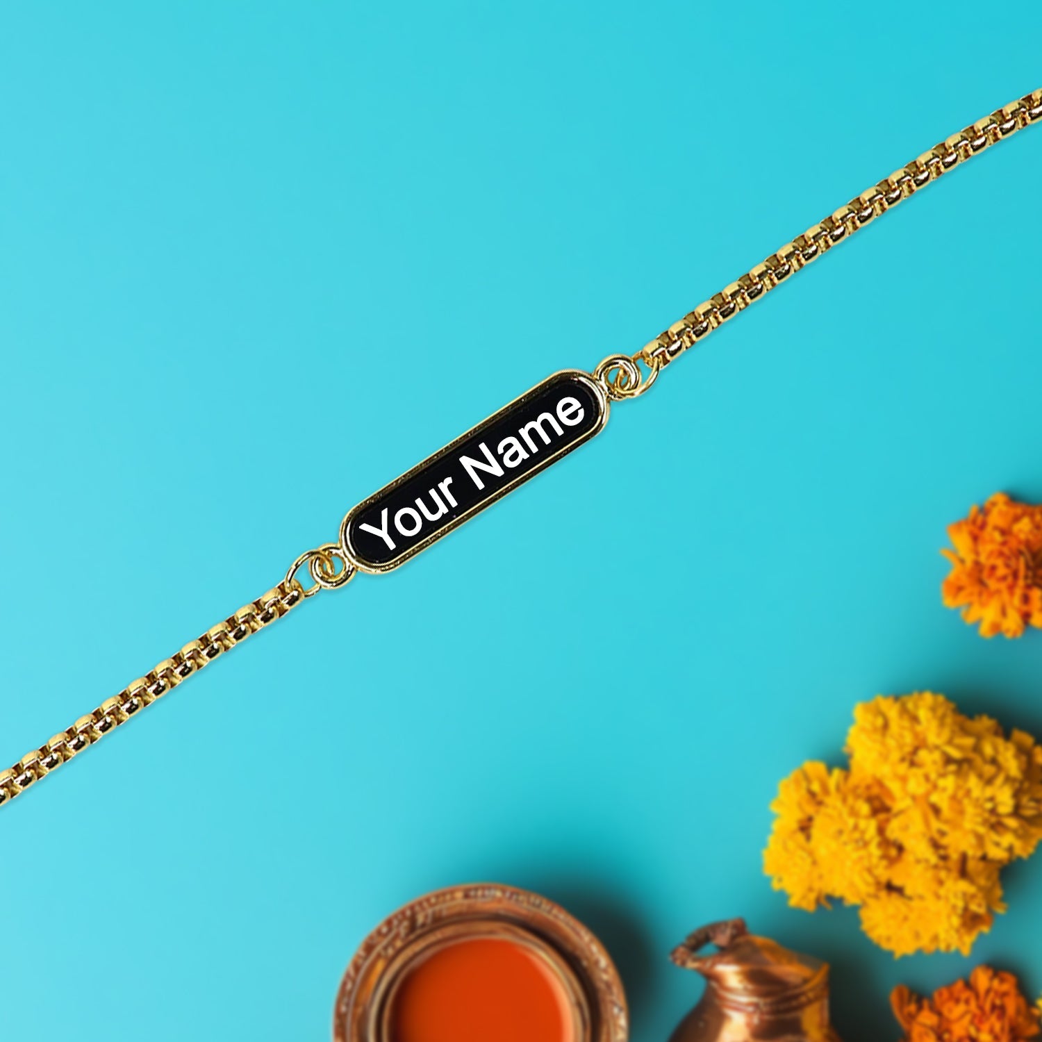 Express your identity with elegance through this custom engraved name bracelet. Featuring a black enamel nameplate and a stylish dual-tone chain, this bracelet is a perfect combination of modern charm and timeless appeal. Personalize it with any name or word to create a truly meaningful accessory or thoughtful gift.