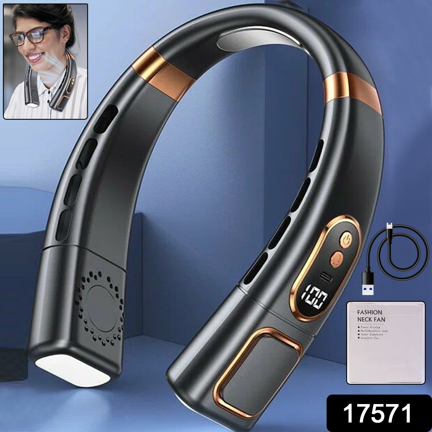 Premium USB Rechargeable Fashion Neck Fan with Digital Display and LED Light – Hands-Free Wearable Personal Cooling Fan with Multi-Vent Airflow, Adjustable Wind Speed & Low-Noise Operation for Home, Office, Travel, Outdoor Walks, Gym & Daily Commute Comfort (1 Pc)