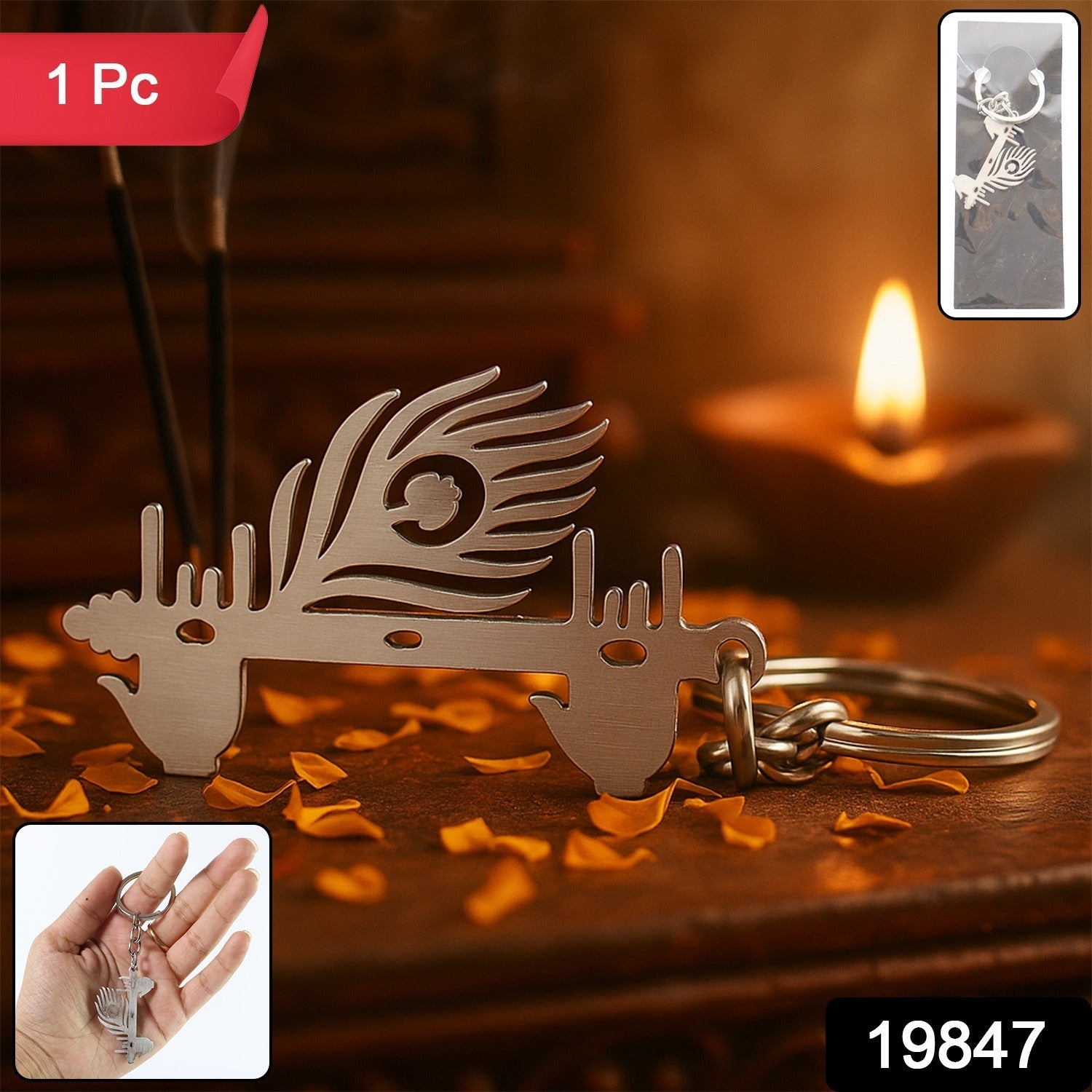 Krishna keychain , flute keychain , peacock feather keychain , Lord Krishna key holder , metal keychain for bike keys , car key keychain , Hindu god keychain , Krishna flute design keychain , religious gift item , Radha Krishna keychain , spiritual accessory