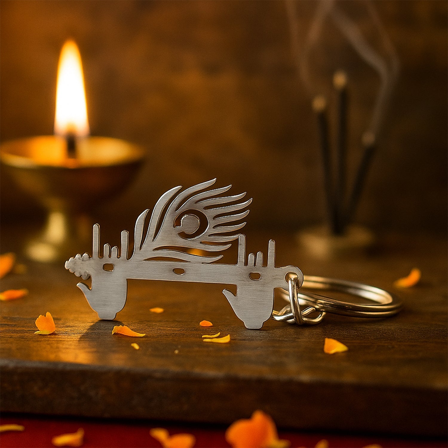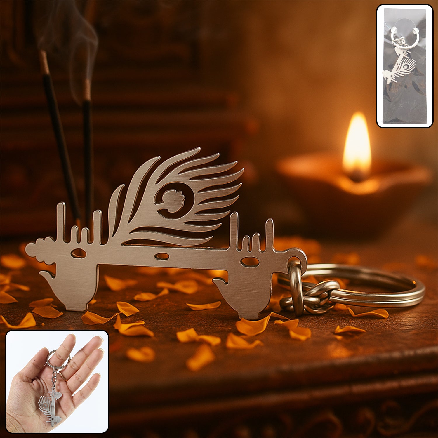Krishna Flute & Peacock Feather Metal Keychain – Devotional Cut-Out Tag with Split Ring, Durable Anti-Rust Links, Smooth Pocket-Friendly Finish | Everyday Key Holder for Bike, Car, Home & Office Keys
