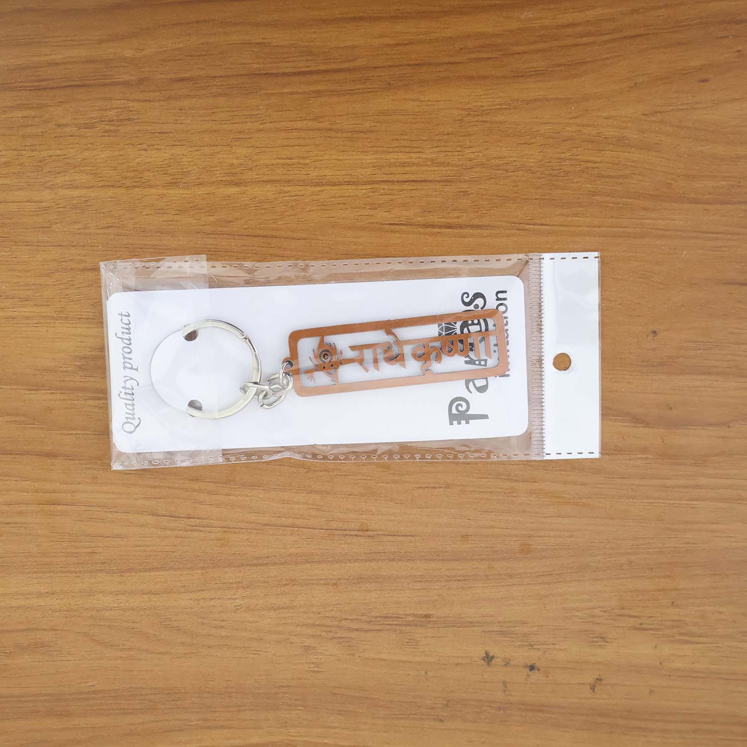 Bring divine blessings and elegance wherever you go with this beautifully designed Radha Krishna Metal Keychain. Featuring a laser-cut “राधे कृषà¥à¤£à¤¾â€ design in Hindi with an intricate peacock feather motif, this keychain reflects devotion, culture, and artistry in every detail.