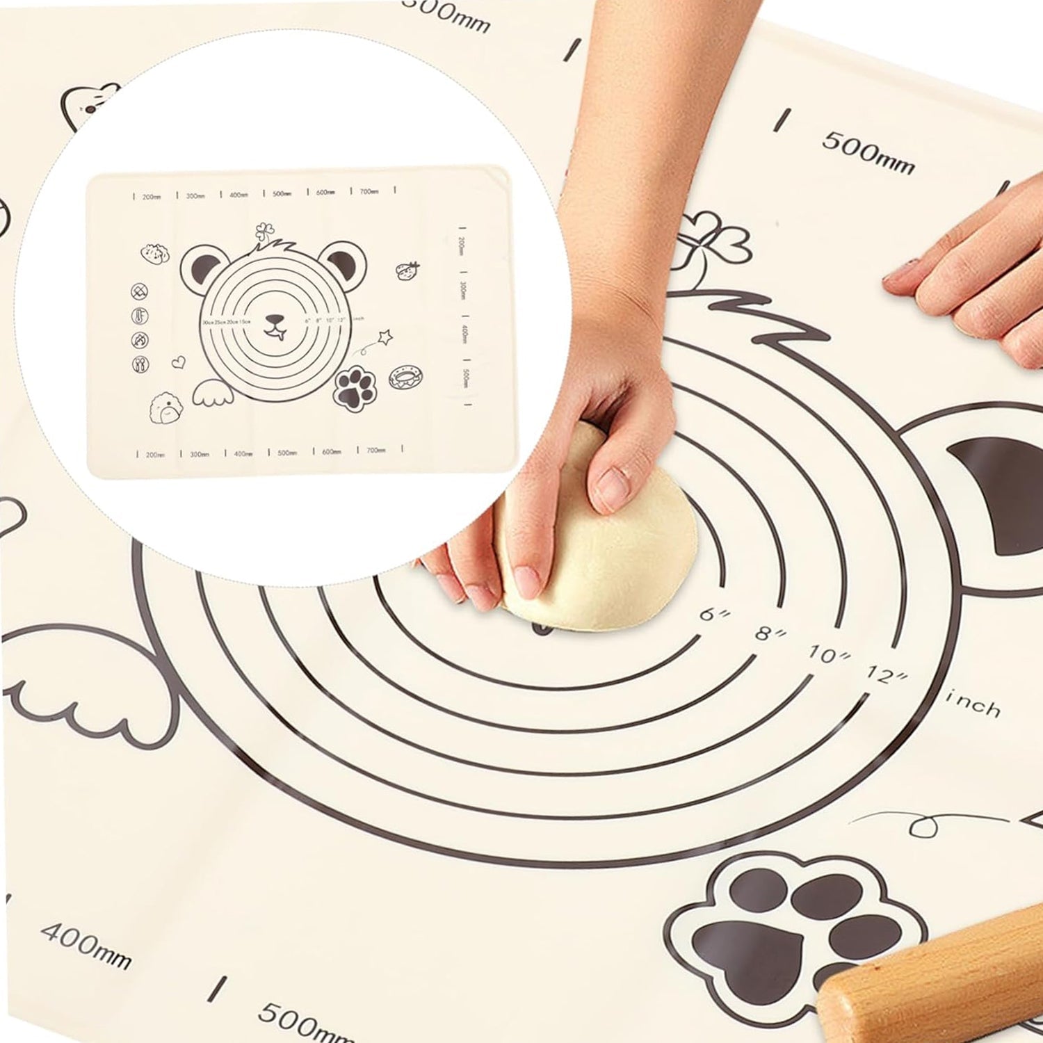 3 In1 Low Silicone Baking Mat With Wooden Belan & Cake Scraper, Non Stick Pastry Mat Sheet for Dough Rolling, Dough Mat Pie Crust Rolling Mat Fondant Mat Oven Liner (3 Pcs Set / 70×50 CM)