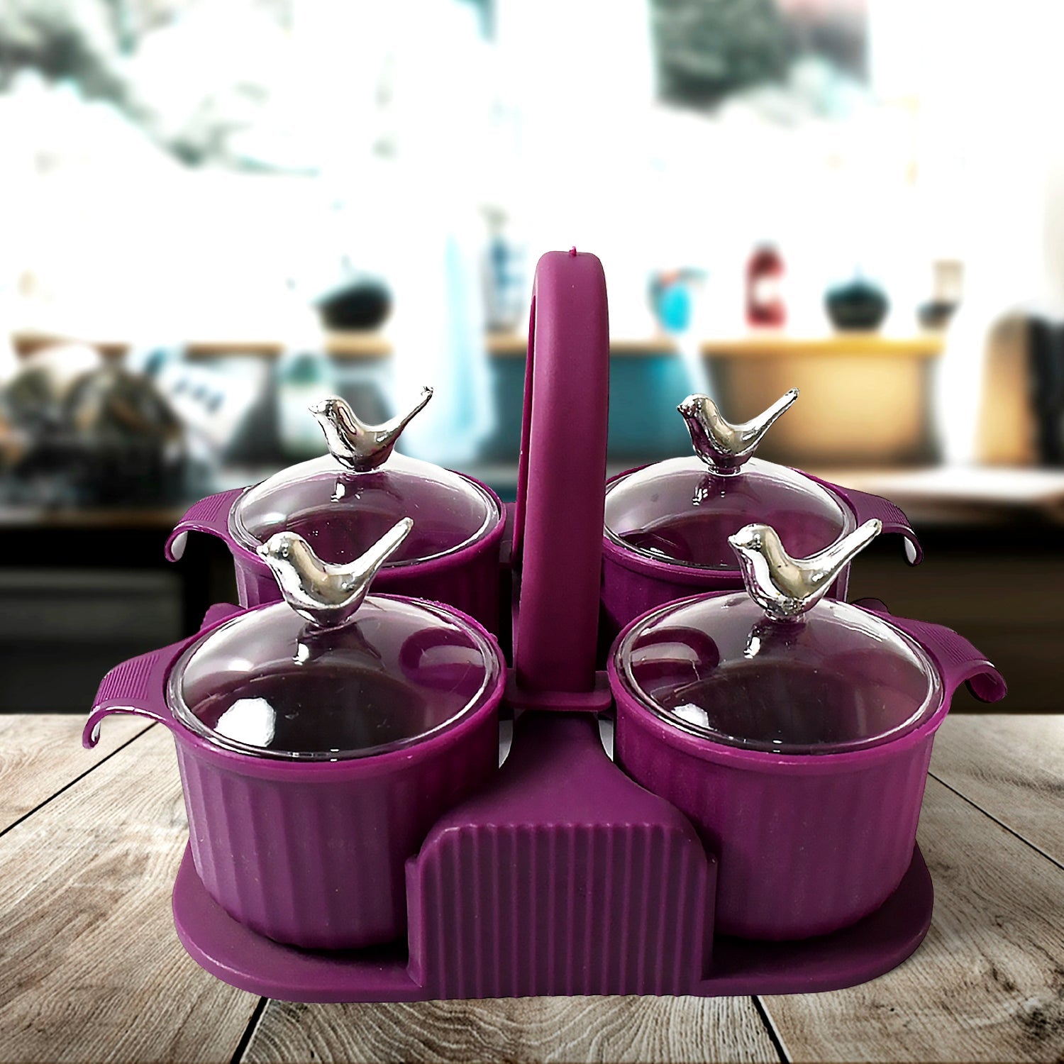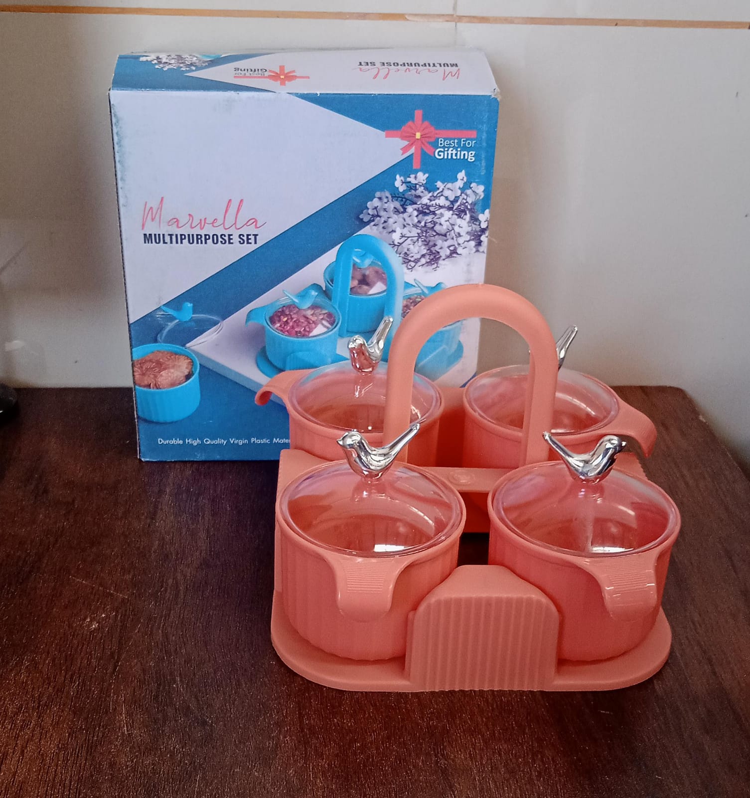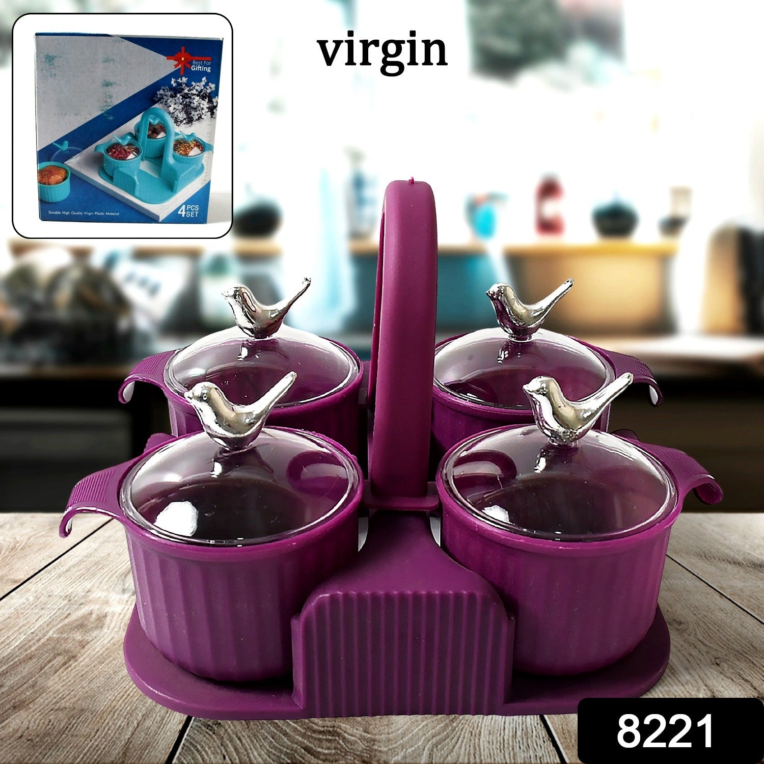 Multipurpose Silver Sparrow, Jar Dry fruit Set, for Home and Kitchen Airtight Dry Fruit Plastic Storage Container Tray Set With Lid & 4 Serving Jar Container for Sweets, Chips, Cookies | (4 Pc Set)