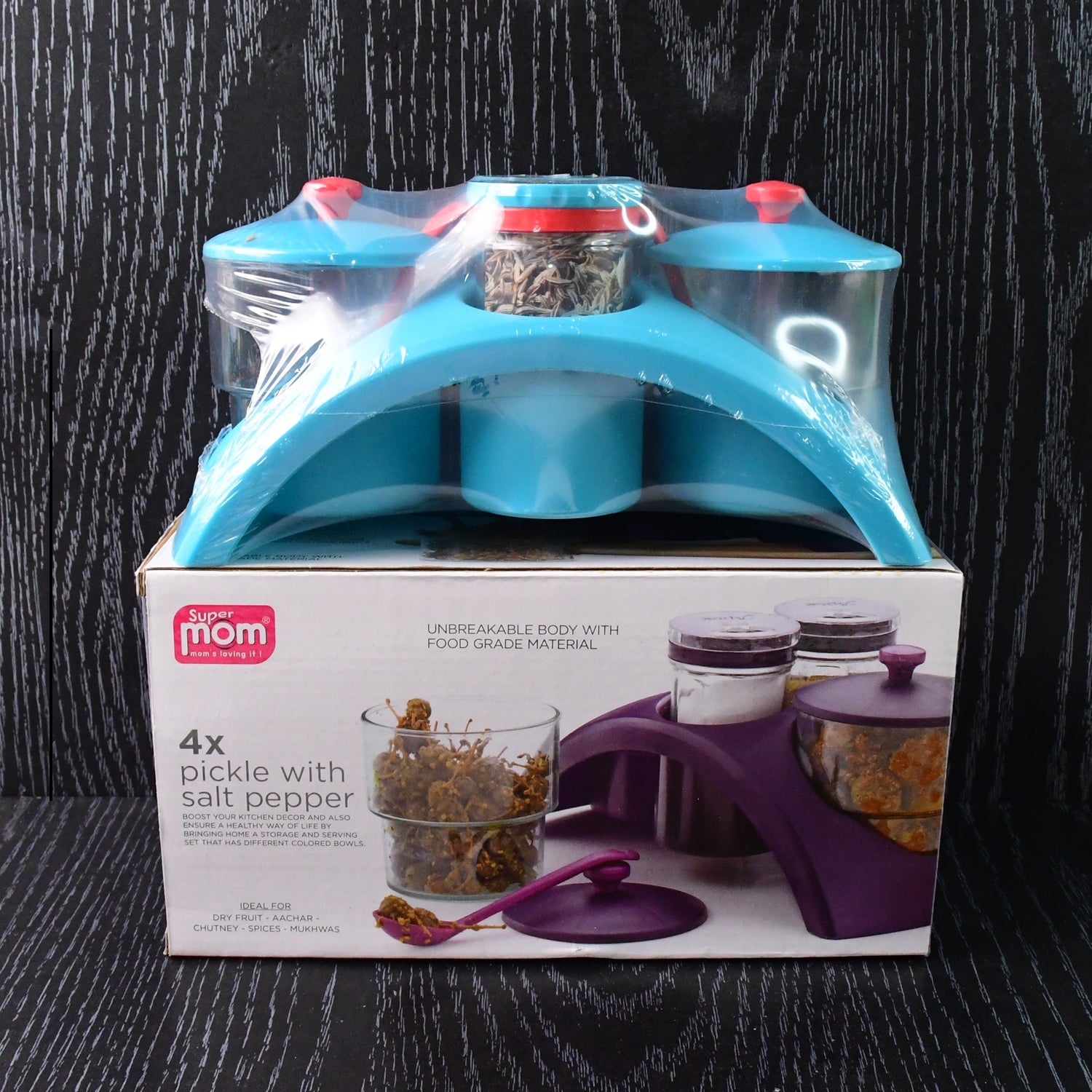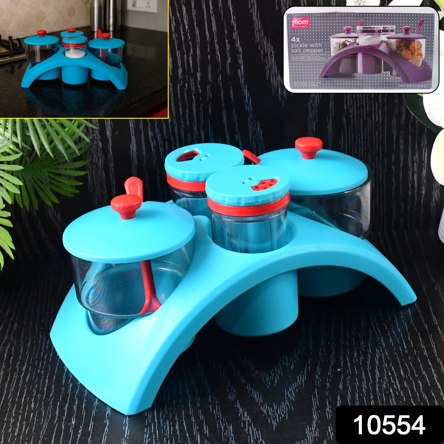 Supermom 4x Pickle with Salt & Pepper Storage Set – Unbreakable Food-Grade Containers with Lid and Stand for Kitchen Organization
