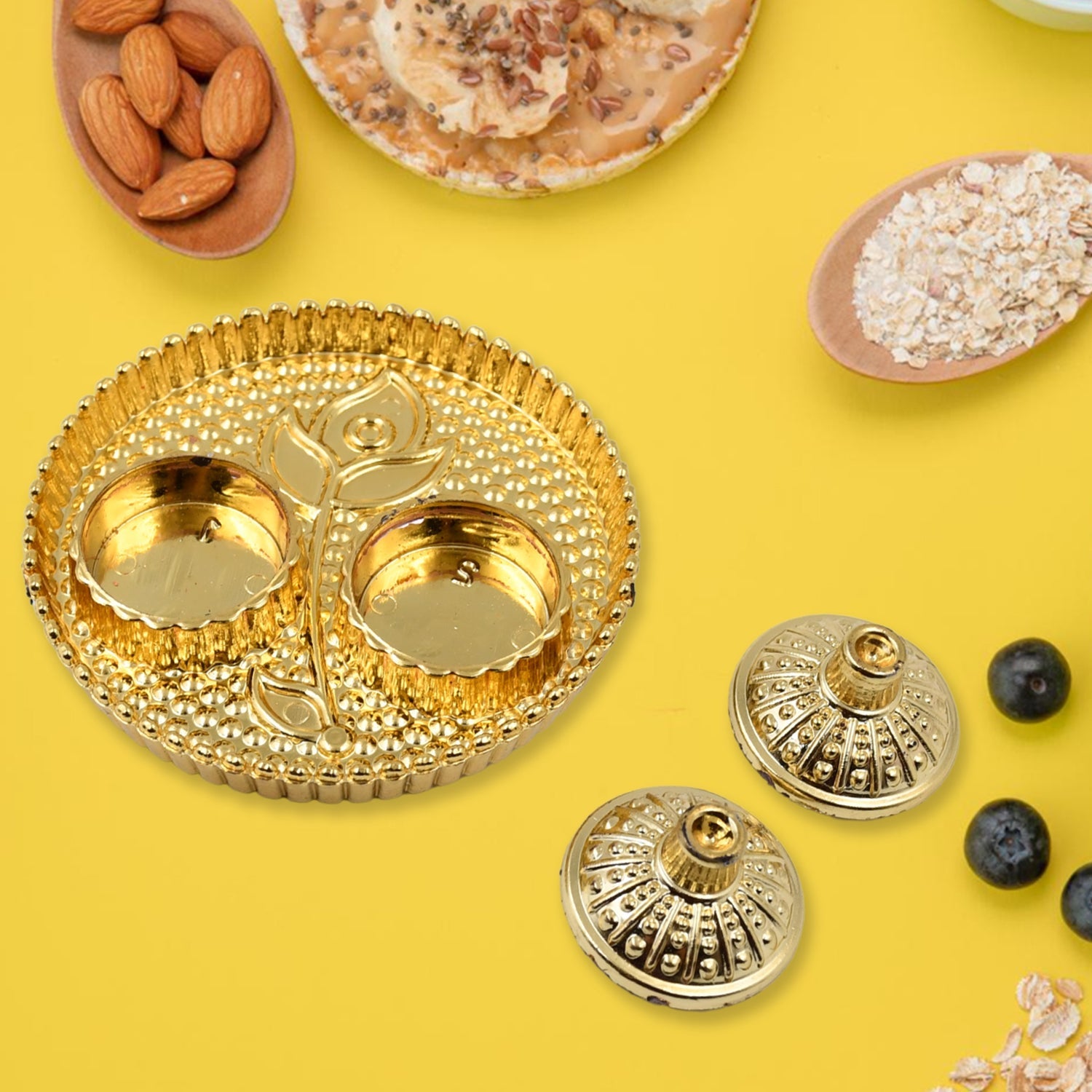 - This Stunning Small Decorative Plate Product Serves As A Haldi Kumkum Or A Sindoor / Roli Pot Holder. It Is Used As To Welcome The Guests During Wedding, Engagement Or Festival As A Return Gifts Housewarming, Thambulam, Varalakshmi, Indian Items, Or Any Other Occasions.