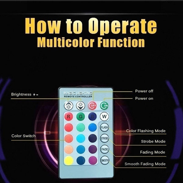 LED bulb with music sensor and remote control for multicolor lighting.