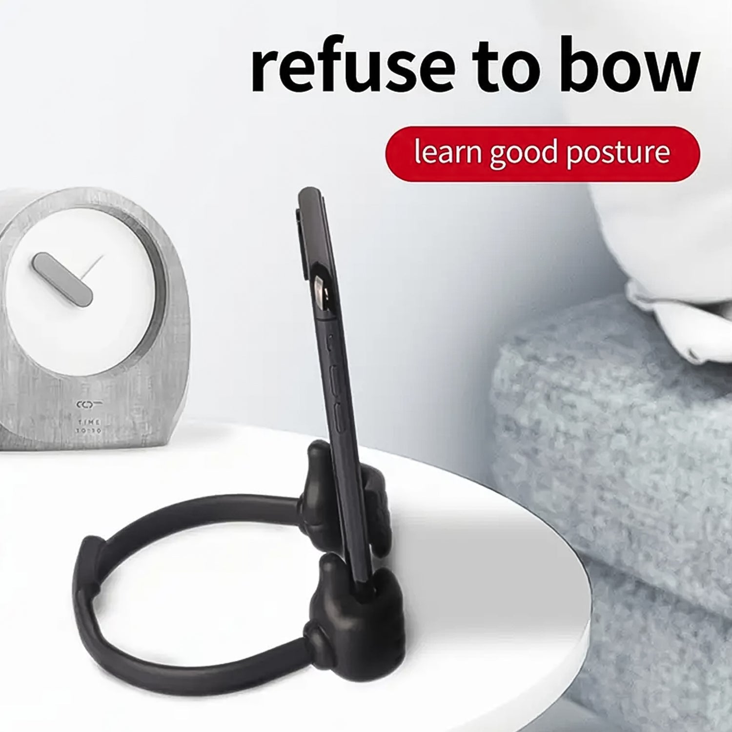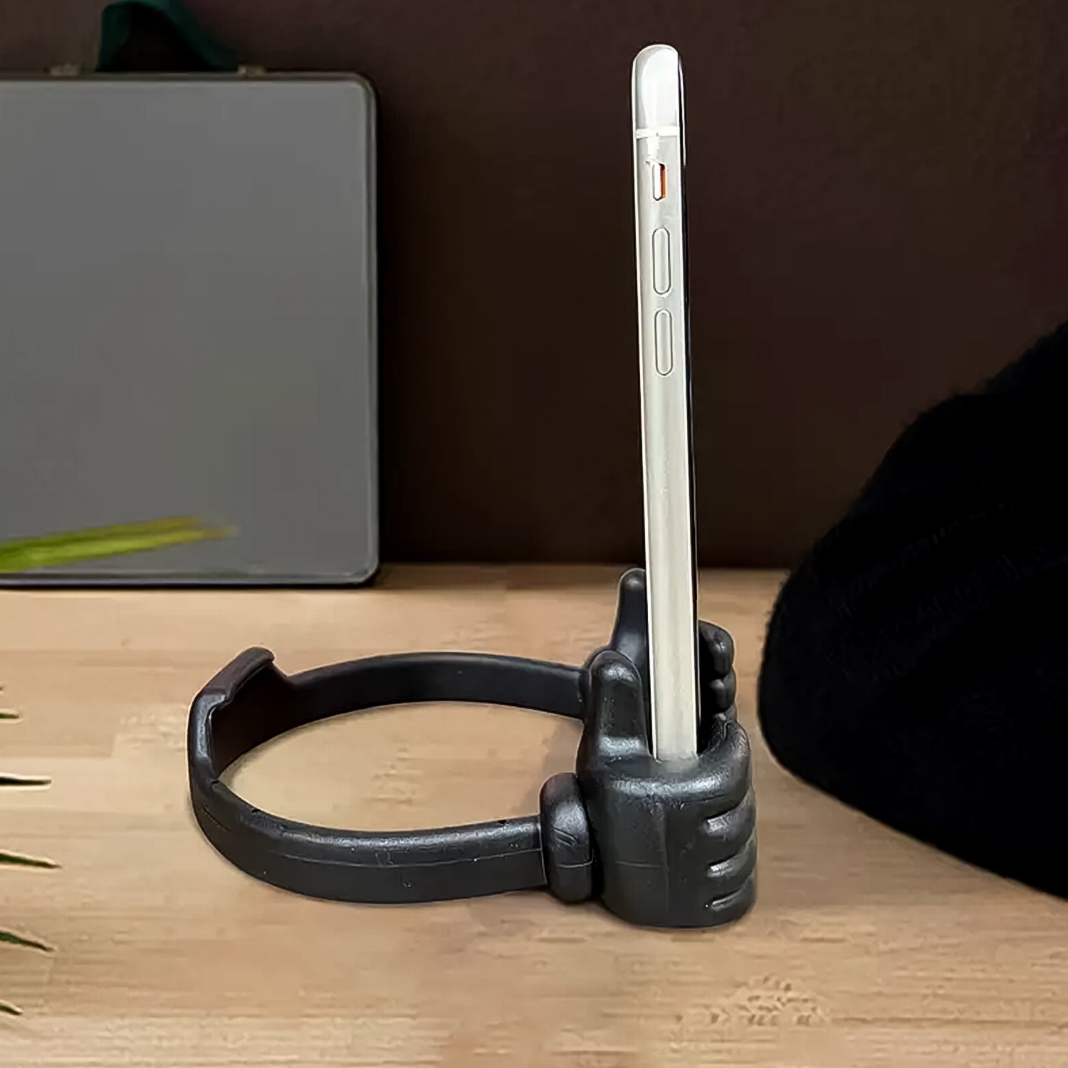 - Cool!!!...cute, compact and effective!!! Thumbs-up design!!! Use it as phone mount at home, phone stand at the office, kitchen display, airplane device viewer for fashion and youth feel.
