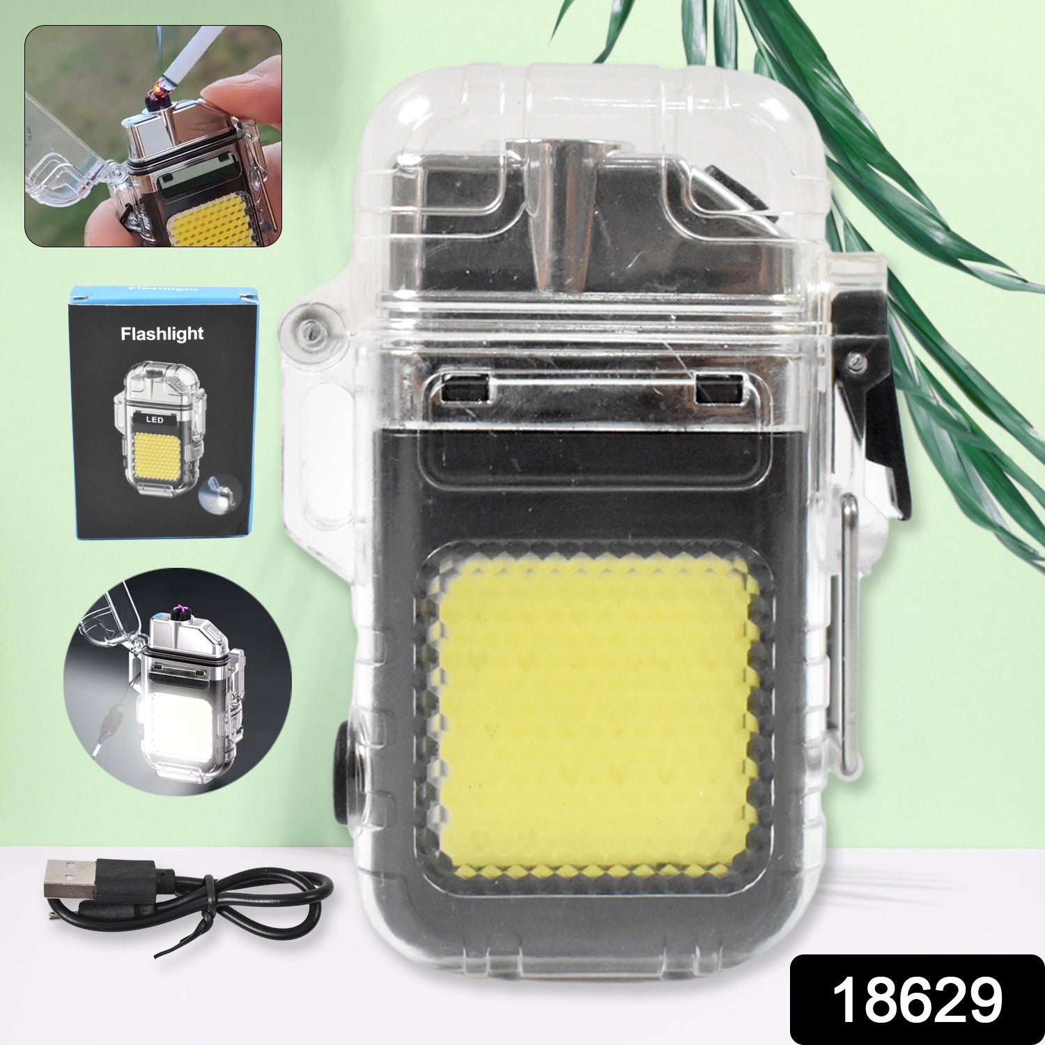 Electric Lighter USB Rechargeable Dual Arc Lighters, Coil lighter with Waterproof Transparent Shell, 3 Modes COB Flashlight Electric Lighter Outdoor Waterproof Double arc Lighter Type-C Rechargeable Transparent Body Lighter COB Portable Light (1 Pc)