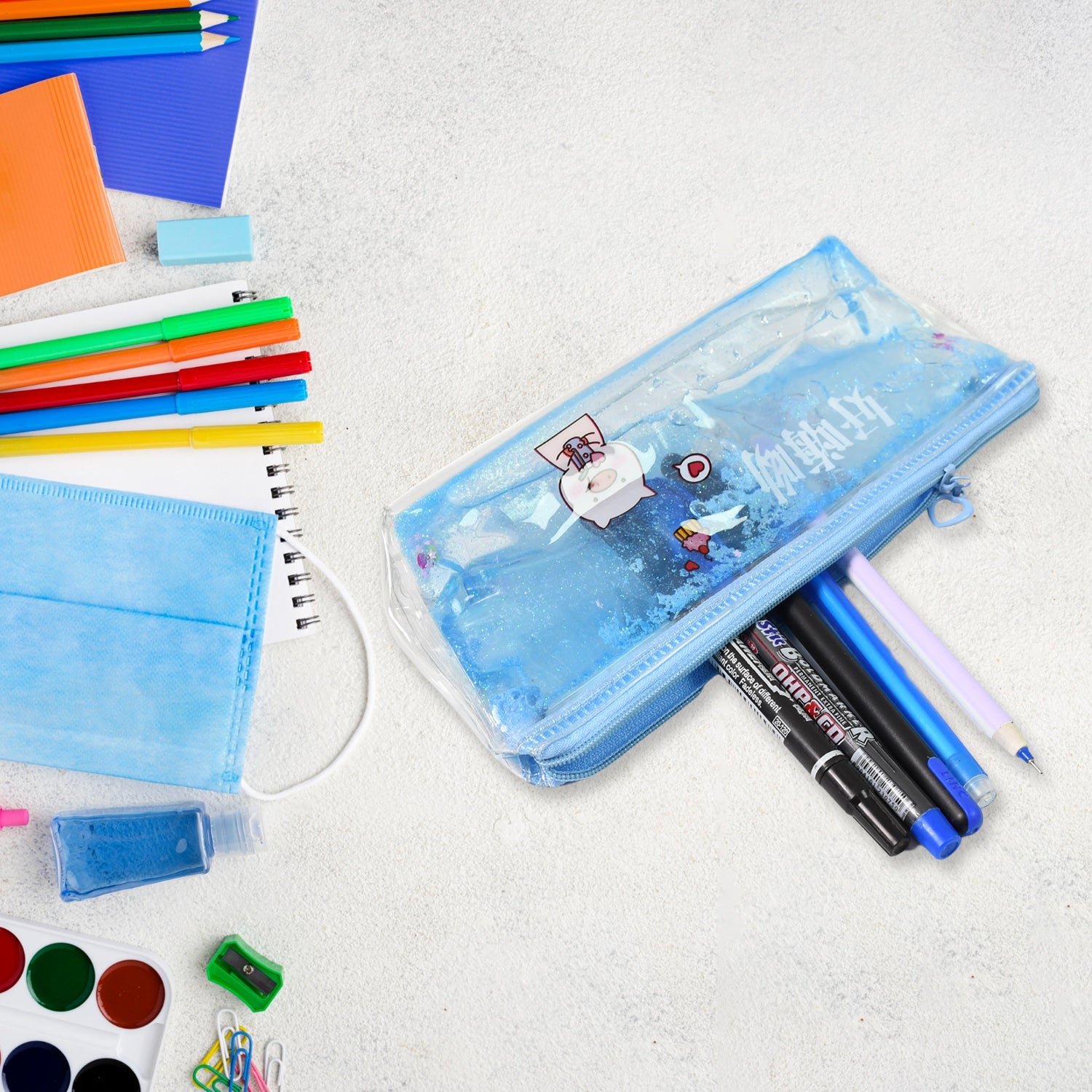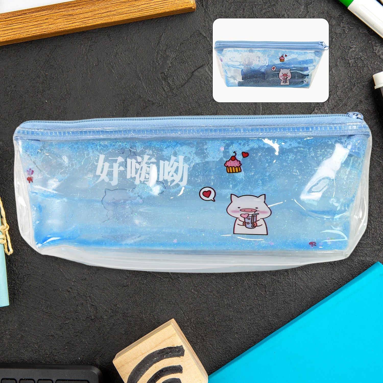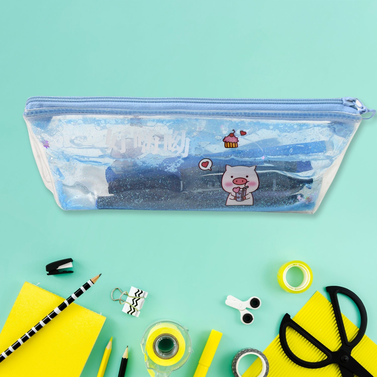 Transparent Unicorn Water Glitter Gel Pencil Zip Pouch Bag Zipper Coin Organizer Pouch Holder for School College Desk Cute Zipper Coin Organizer Makeup Cosmetic Pouch Holder (1 Pc)