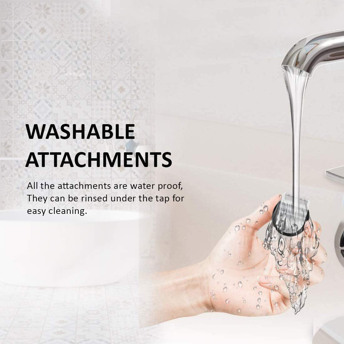 Fully Detachable head which is easier to rinse under the tap after every trim. Dry it before you put it back on the appliance.