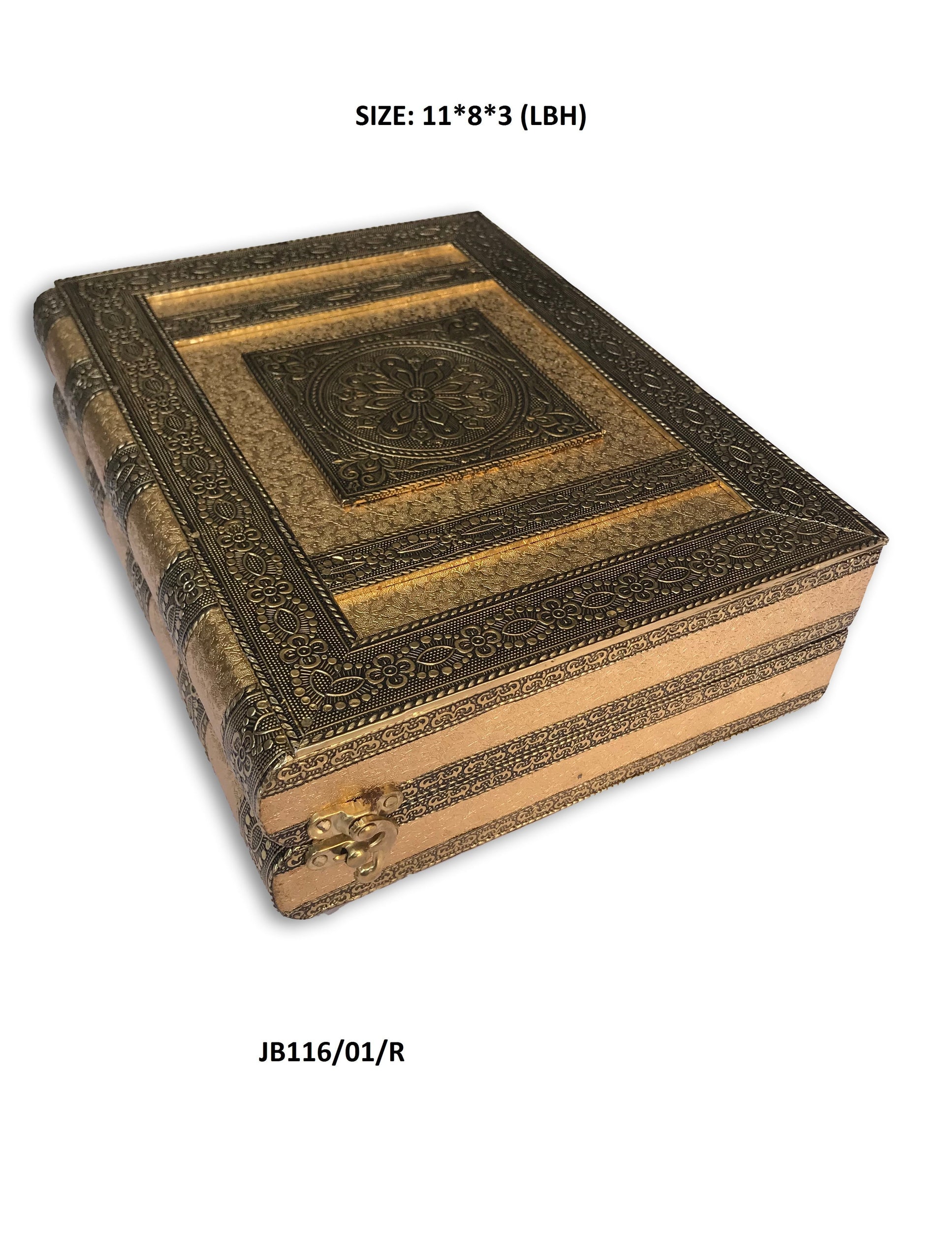 Oxidised Jewellery Box minakari Box. you can use it as a jewelry box. Jewellery boxes are beautiful receptacles for your jewels and trinkets. This jewellery box is made of wood covered with high quality metal foil having good quality velvet inside. It has 5 boxes for earrings n chains and 1 row for bangles. attractive & useful look for lock. Jewellery box helps you develop the habit of taking care of your jewellery properly. This individually engraved box is in fact often collected as decorative box. Using a jewellery box helps - keep jewellery safe so it cannot be lost or inadvertently damaged, keep jewellery in one location so pieces of sets are not separated, keep jewellery clean by keeping it away from daily dust, dirt, and grime. It can be a precious gift item too. This oxidized finish box is ideal for gift at weddings.