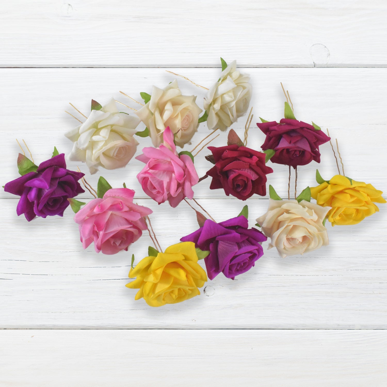 Colourful Flowing Flower Hair Pin (12 Pcs Set / Mix Color)
