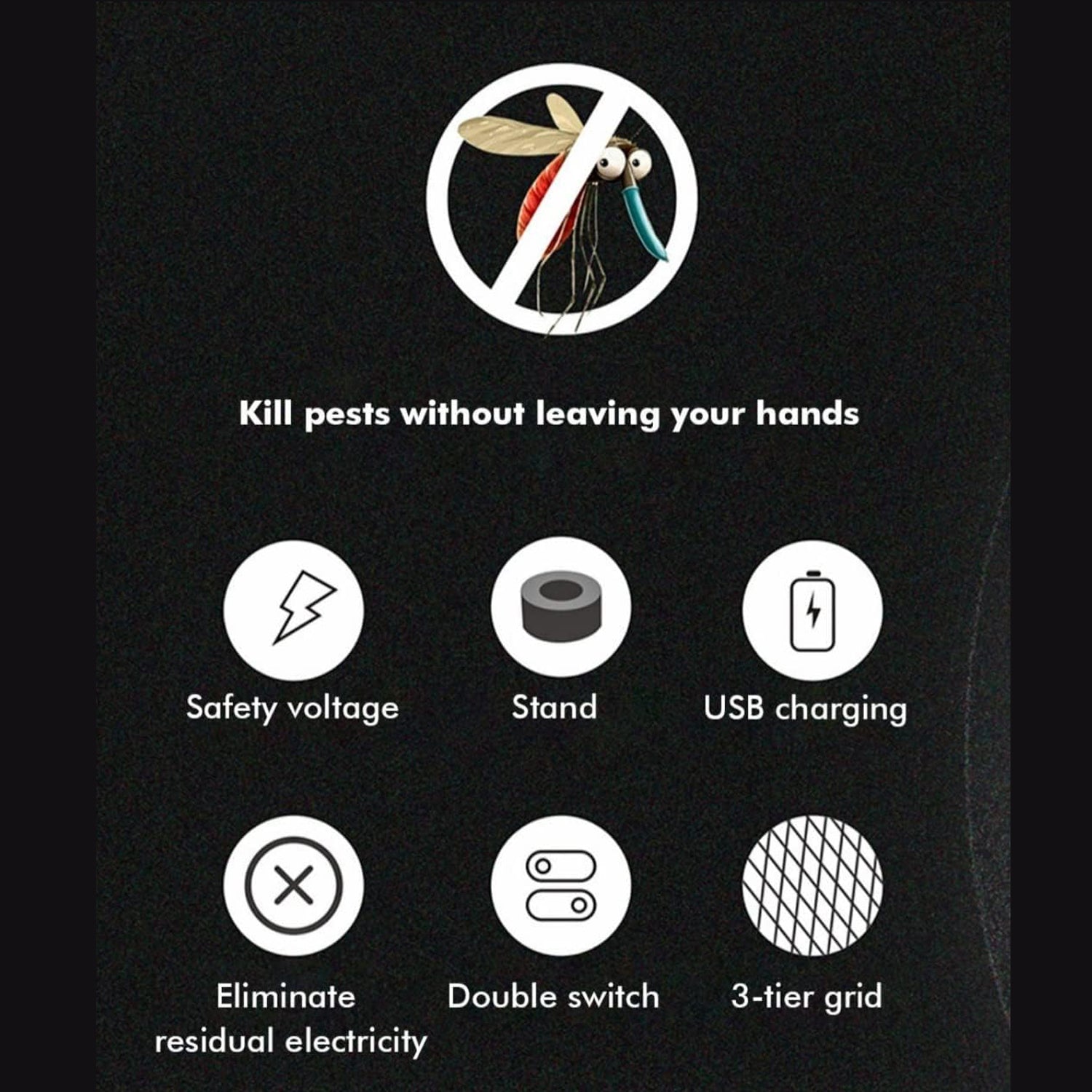 1747 Mosquito Killer Racket | Rechargeable Automatic Electric Fly Swatter | Mosquito Zapper Racket with UV Light Lamp | Mosquito Swatter with USB Charging Base | Electric Insect Killer Racket Machine Bat