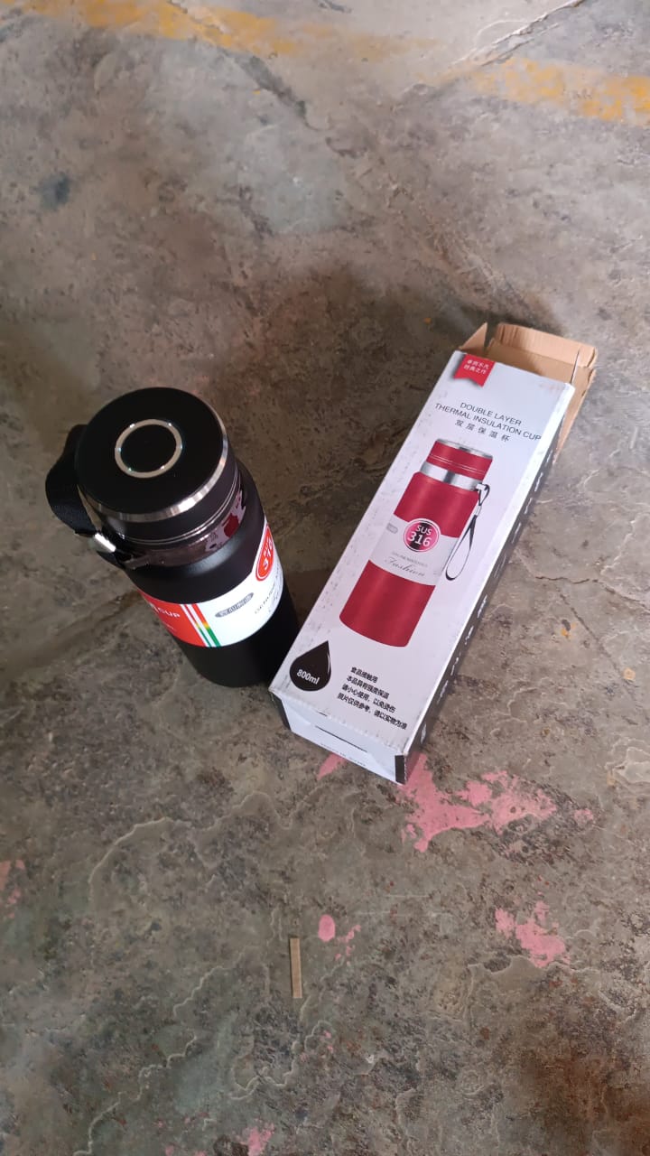 - Stainless-steel Thermos water bottle ; ideal for home, school, the office, or on the go.