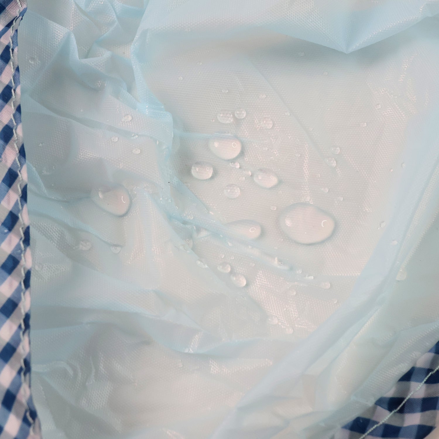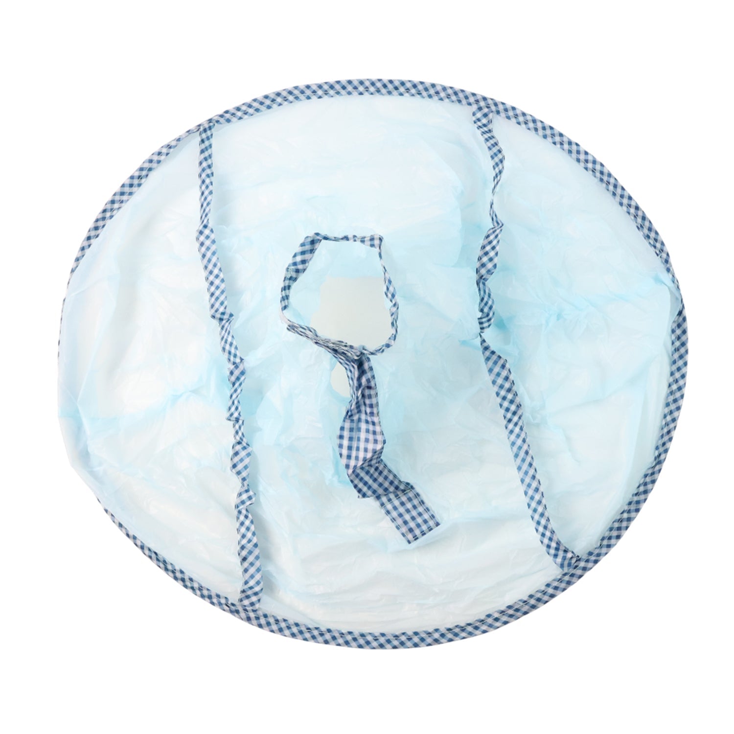 Material Class: Lightweight plastic film with fabric edging and neck loop