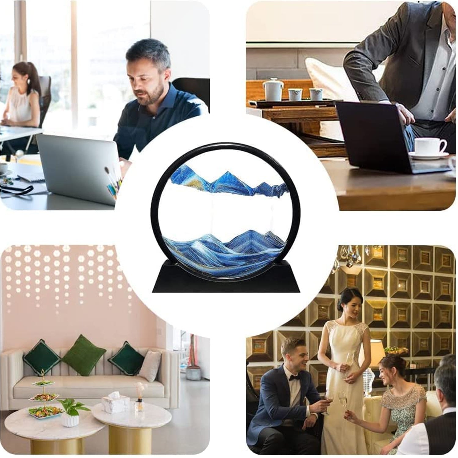 8781 Moving Sand Art Picture Decor, 3D Deep Sea Sands cape Liquid Motion, Round Glass Frame Display Flowing Sand Relaxing Gift for Kids Adults Painting Artistic Sands cape for Home, Office, Ornament Desktop Art Bookshelves Decoration (1 Pc)