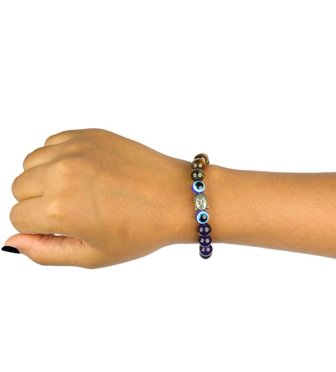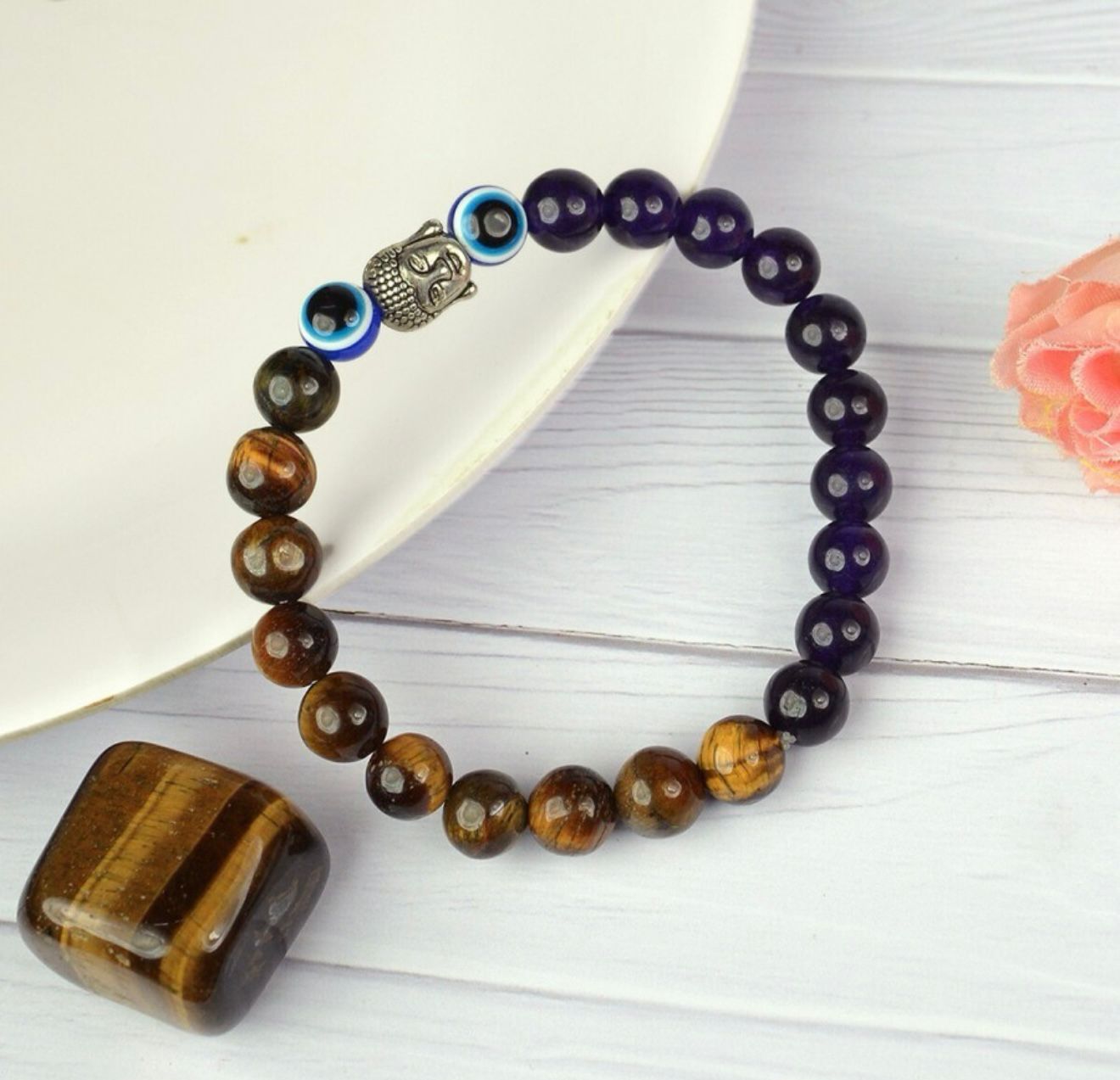 Stone Crystal Tiger's Eye Evil Eye Beads Charm Bracelet