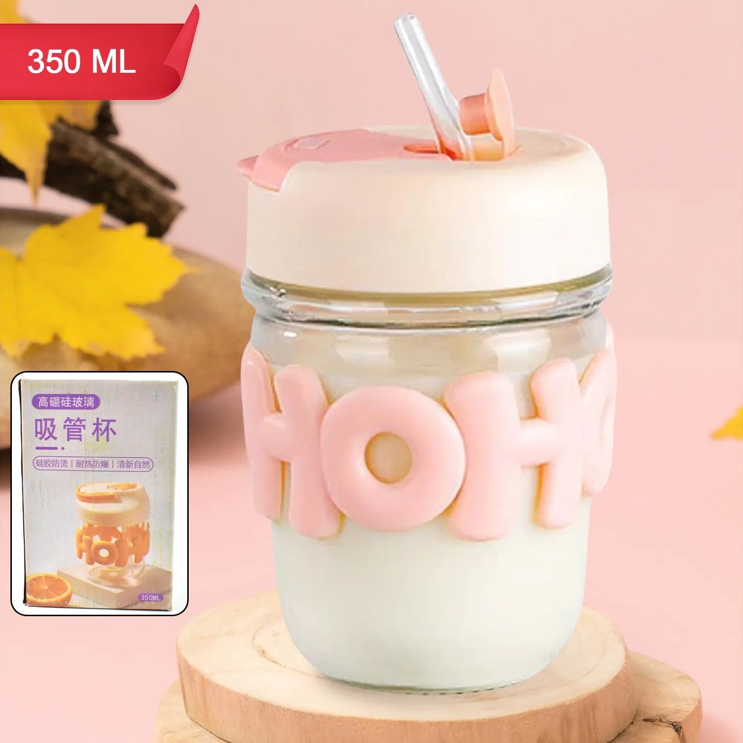 6385 Printed Coffee Cup with Lid and Glass Cup for Tea and Coffee Mug, Set of 1, Glass Cappuccinos Cup, Espresso Cup, Big Juice Milk Cup, Tea Mug, portable alphabet water cups, high-value coffee cups 350 Ml
