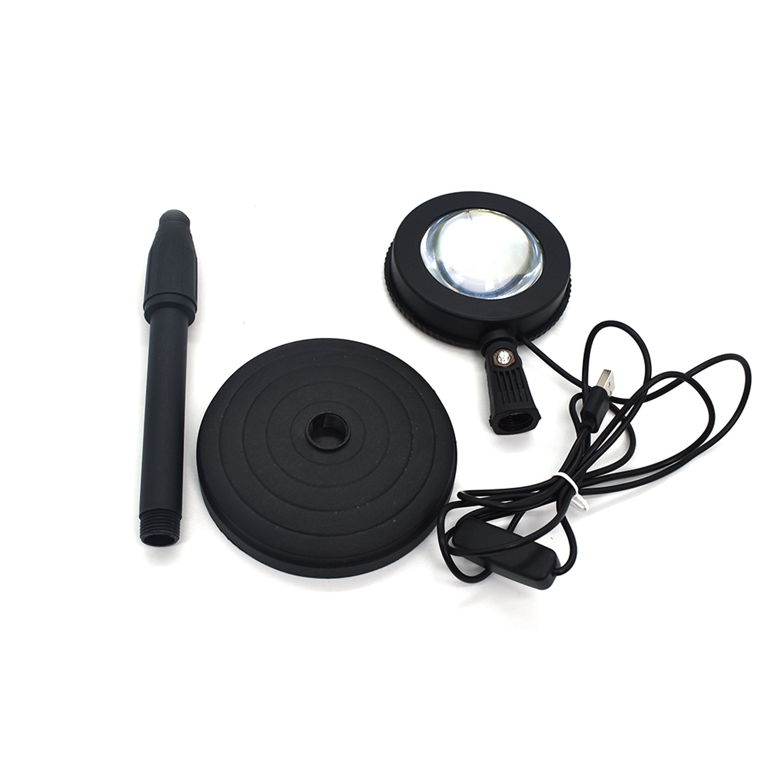- 360° Rotated & Height Adjustable :The sunset light holder can be rotated 360 degrees, the size, and shape of the halo can be adjusted by rotating the lamp. The height from 10.8in to 15in, easy to carry, equipped with USB interface, only a power bank can be used.
