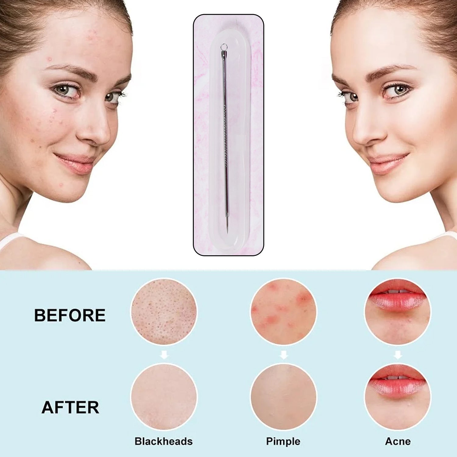 Blackhead Remover Needle Blackhead Acne Extractor Needles Skin Care Stainless Pimple Blemish Extractor Remover Black Head Face Cleanser Tools (1 Pc / With Case)
