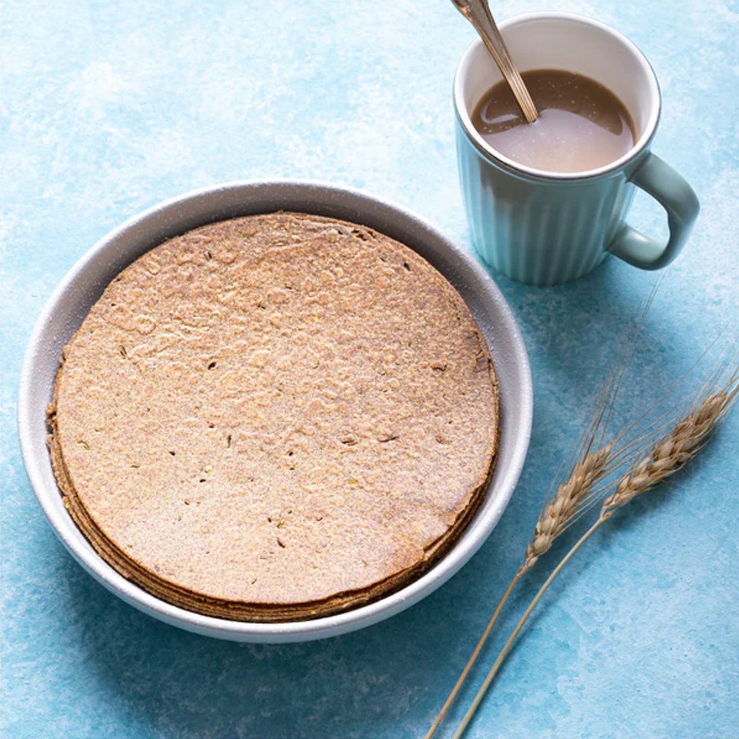 Irresistible Carmonised Ragi khakhra wheat chips - the perfect healthy snack to satisfy your cravings anytime, anywhere! Made with a blend of whole wheat flour, ragi flour, and carom seeds, these chips are delicious and packed with essential nutrients.