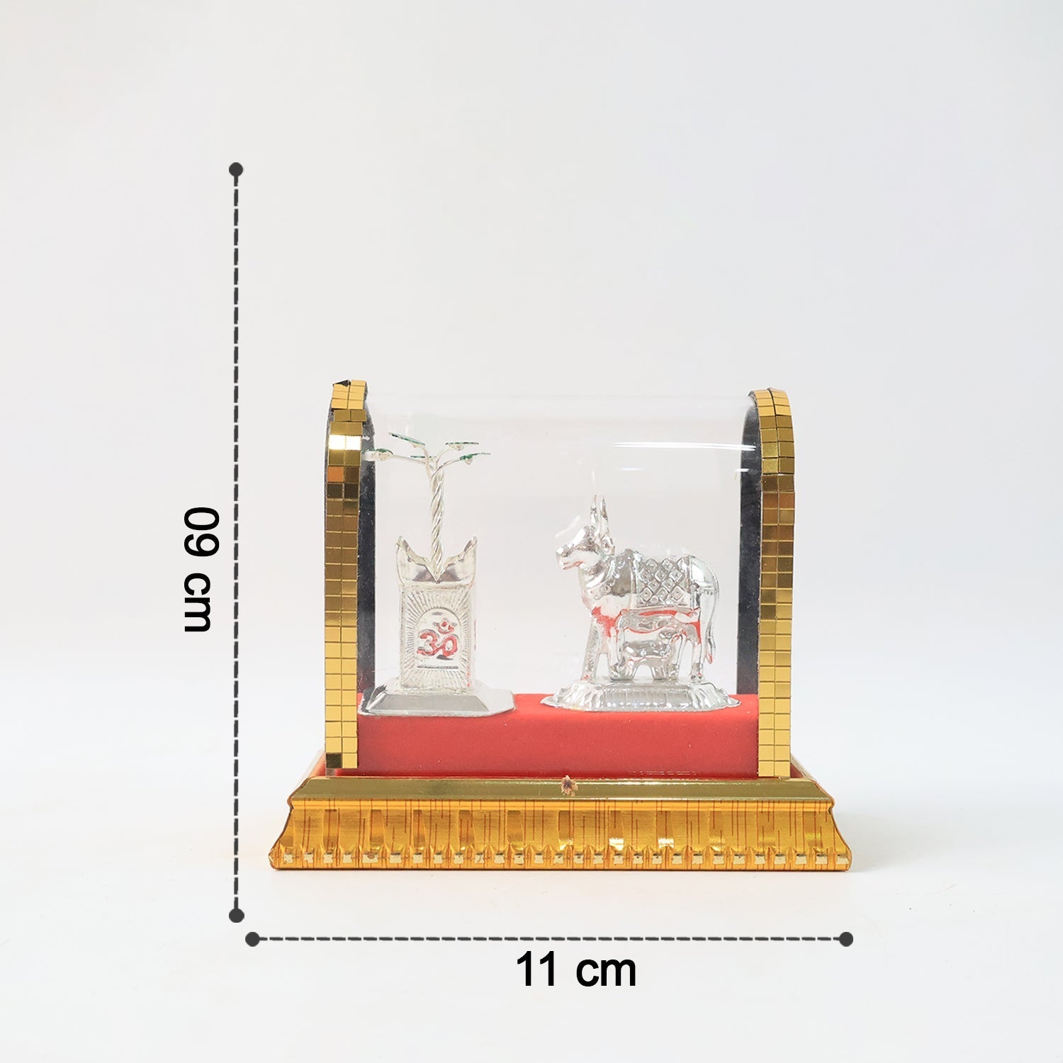 Decorative Kamdhenu Cow with Calf and Tulsi Plant Idol Set