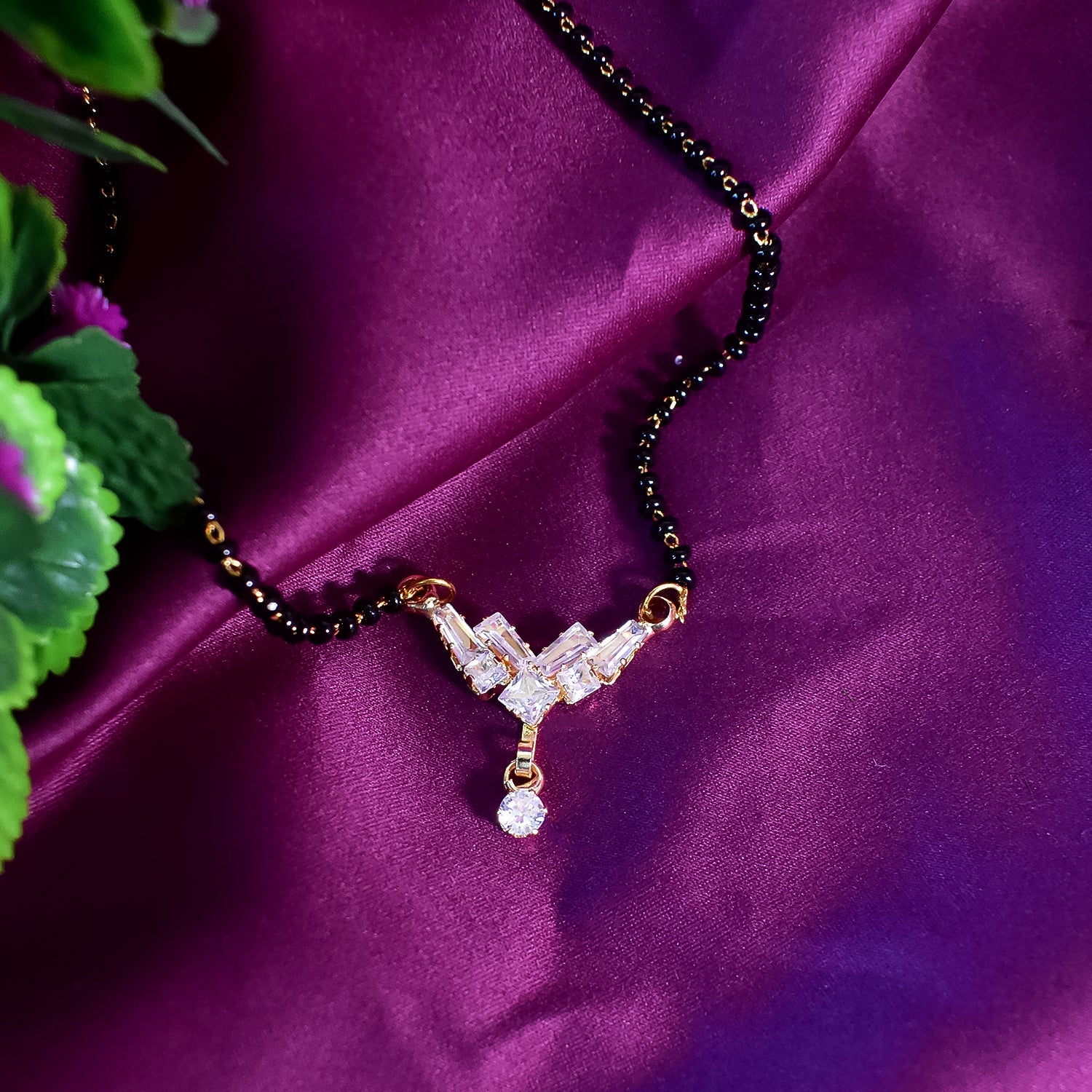 Gold Plated Mangalsutra Diamond Pendant Black Bead Chain For Women