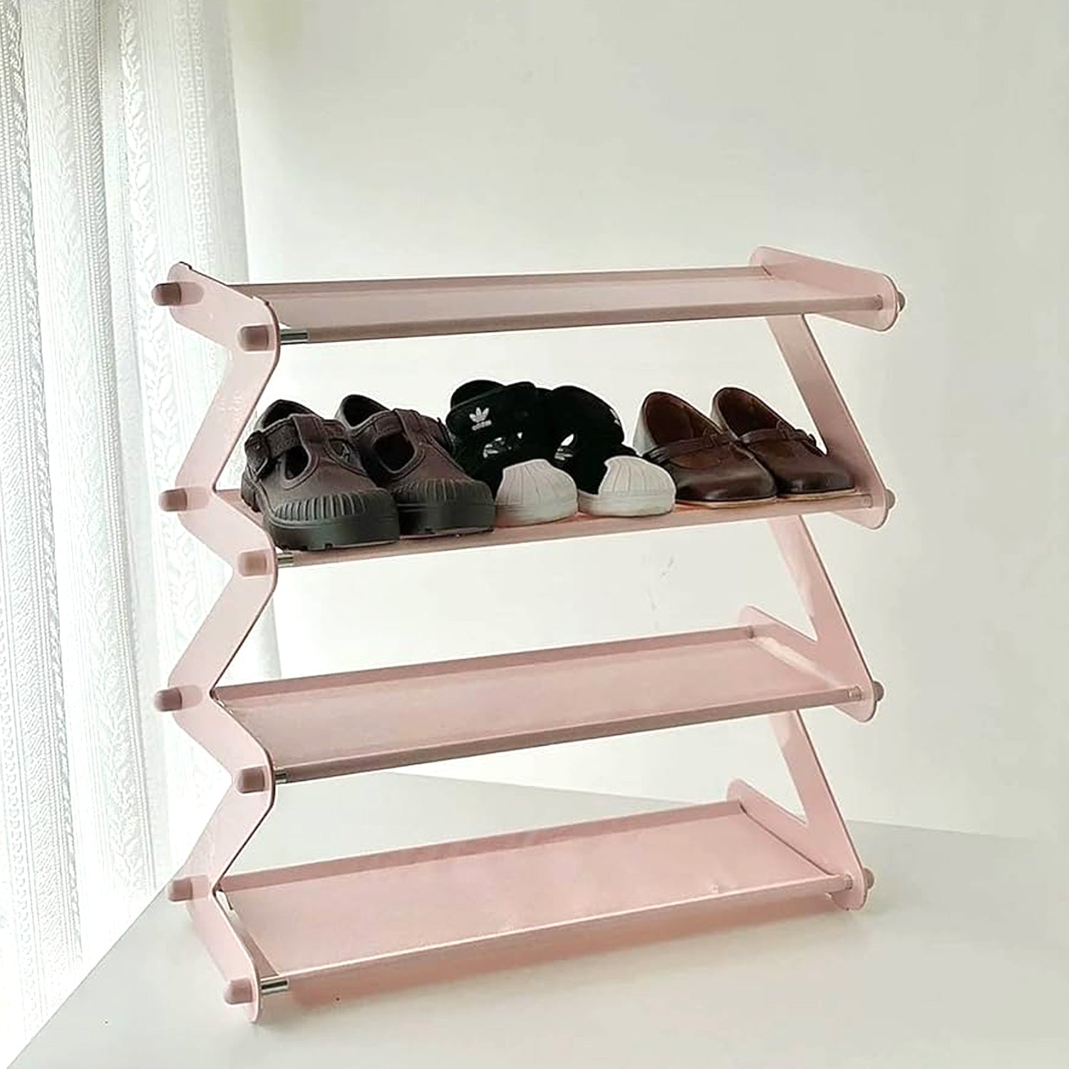 Shoe Rack Z-Shaped Four Layer Shoe Storage Shelf Foldable Vertical Shoe Shelf for Living Room Space Saving Shoe Organizer Rack for Home and Office (1 Pc / 4 Layer)