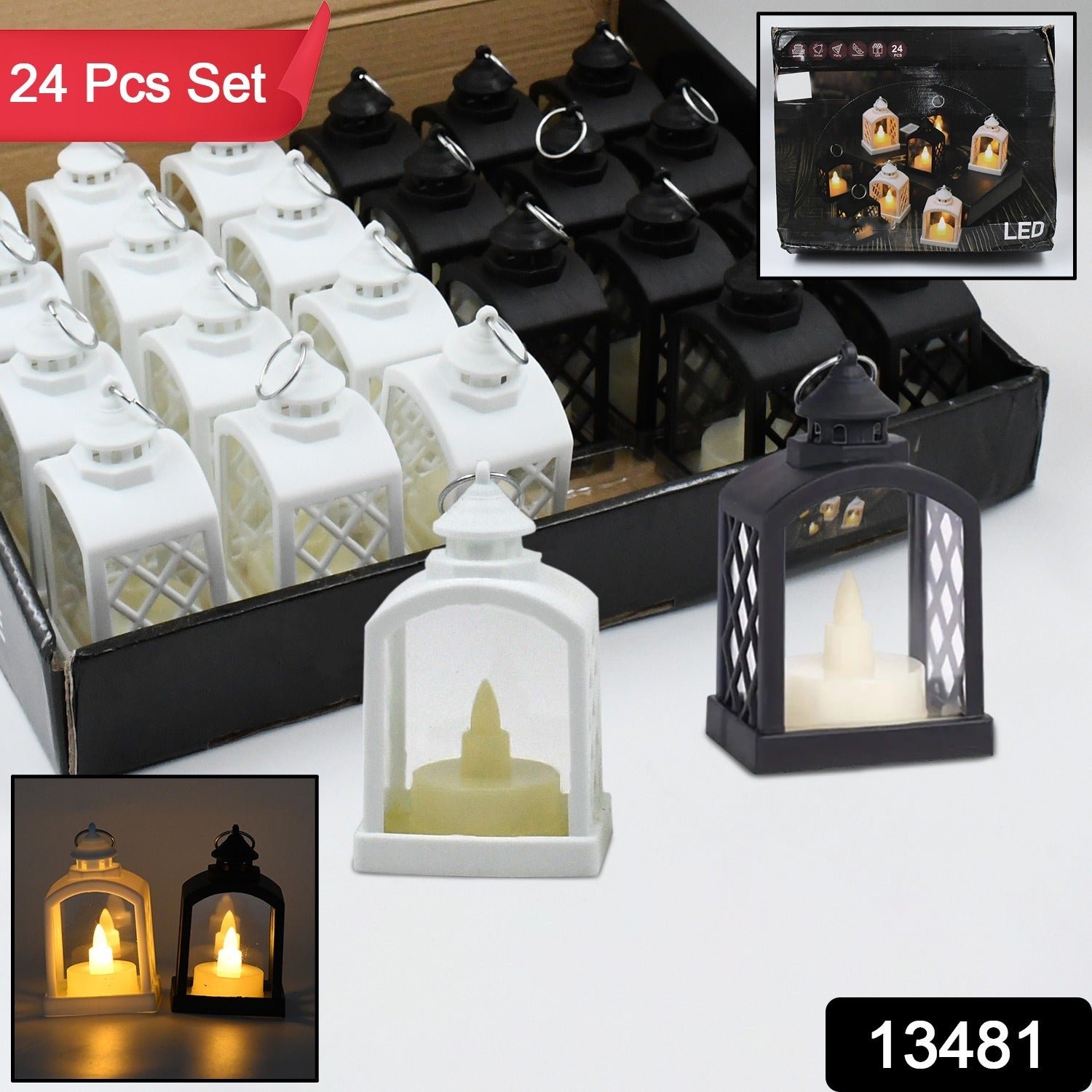 Smokeless Led Light Lantern Lamp and Wall Hanging Led Candlelight Holder for Home, Drawing Room, Diwali Decorations (24 Pcs Set)