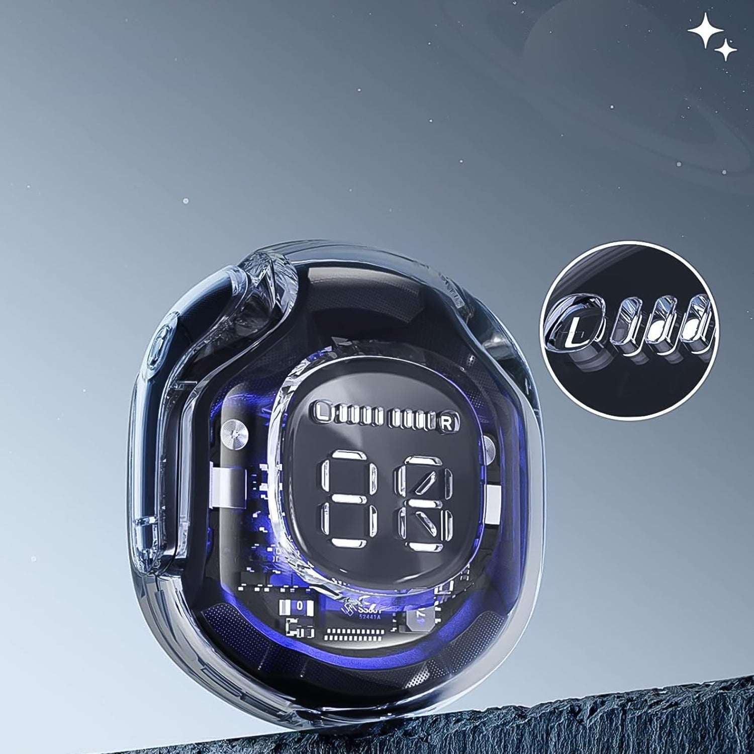 Bluetooth Headphones, Wireless Bluetooth 5.3 In-Ear with Microphones, 200mAh Battery, Transparent LED Display, ENC Noise Cancelling Earbuds, Earphones (1 Pc)